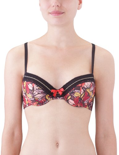 Rosy Poète - Soutien Gorge Classique - Paddé - Végétal/Fleuri - Maille Extensible - Femme - Orange (Noir/Gold) - 80/95B